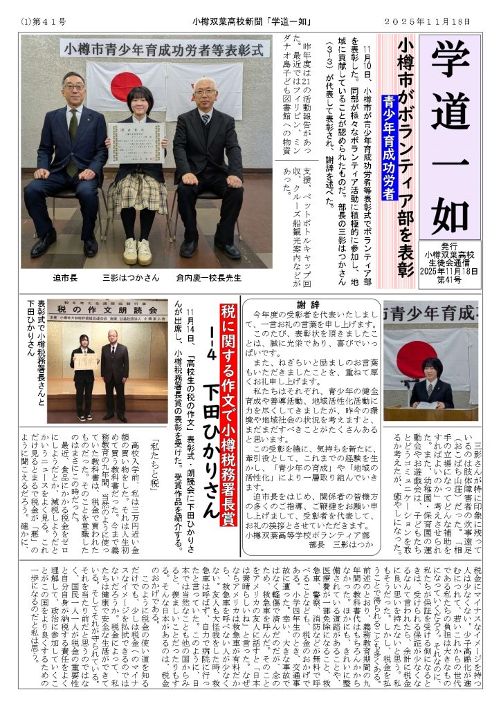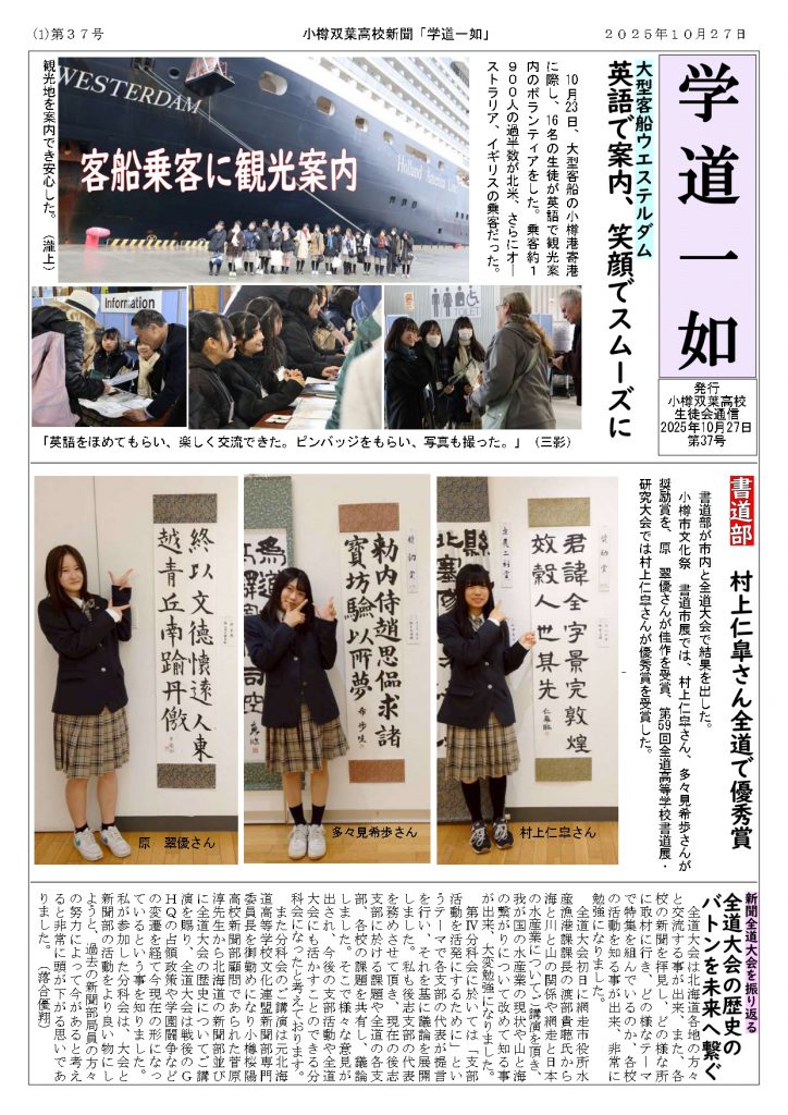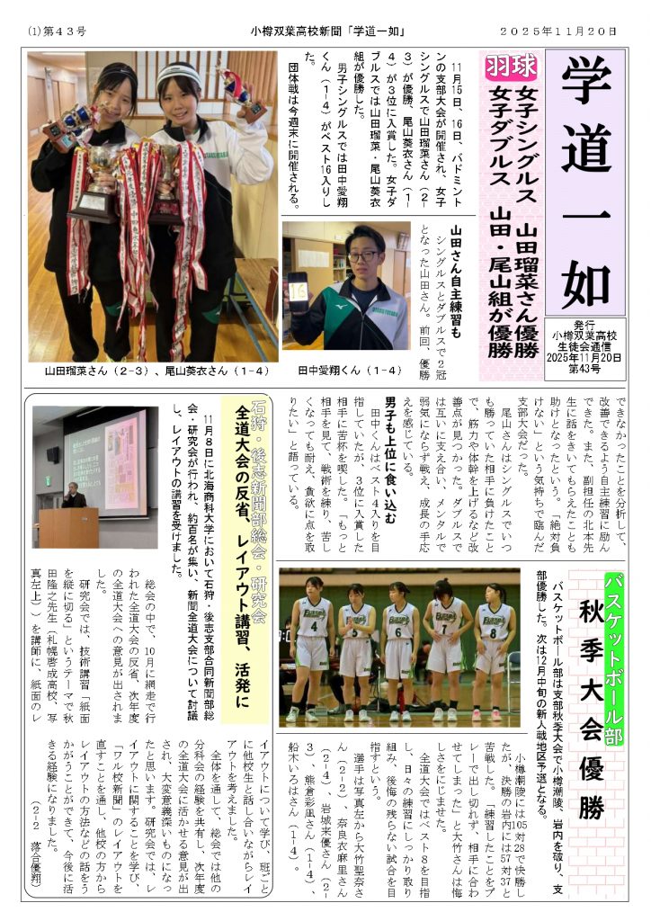◉令和7年度全道高校新聞コンクール(北海道高文連、北海道新聞社主催)の「手書き・ワープロ」部門で本校の新聞同好会が総合賞を受賞しました。