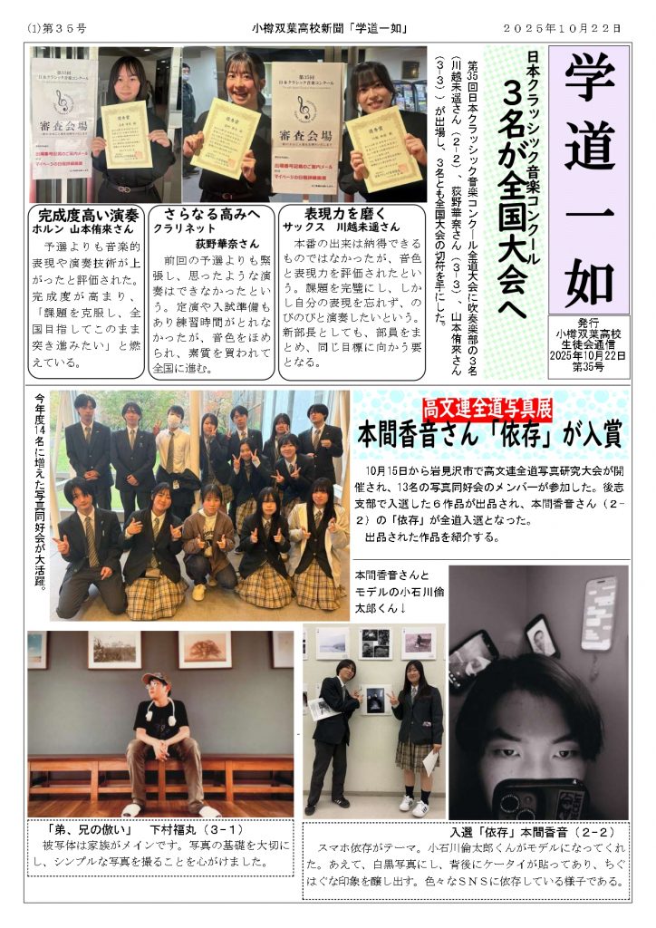 ◉令和7年度全道高校新聞コンクール(北海道高文連、北海道新聞社主催)の「手書き・ワープロ」部門で本校の新聞同好会が総合賞を受賞しました。
